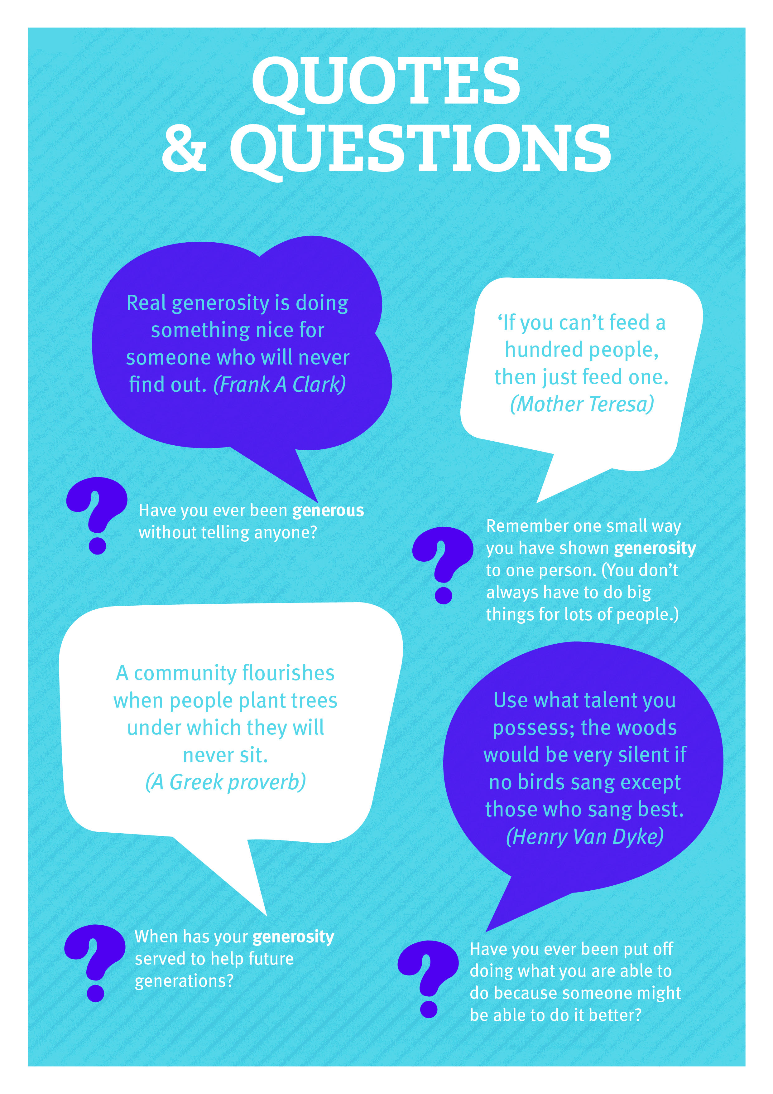God's generosity is the best described as "grace" - love given freely without limit or conditions. God's generosity, once experienced and acknowledged by an individual, can in turn release generous actions and a joy that comes from seeing others blessed.